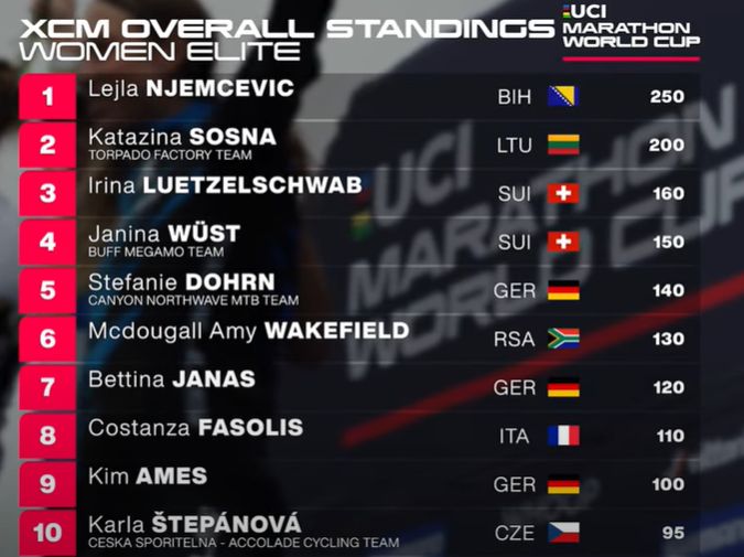 Nakon posljednjeg upisa bodova najbolja bh. biciklistkinja Lejla Njemčević zauzela je prvo mjesto na svjetskoj UCI maraton ranking listi.