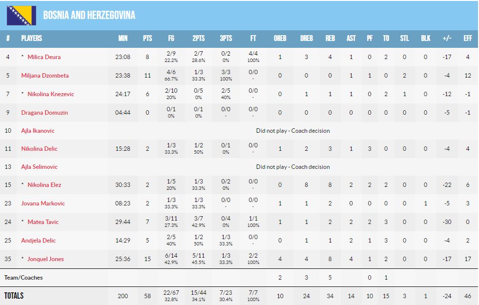 “Reprezentacija će u narednim utakmicama kvalifikacijama okrenuti novu stranicu, nastupit ćemo u izmijenjenom sastavu. Na spisku su neke nove igračice od kojih očekujemo da već sad budu bitan segment tima, kao i one za koje vjerujemo da pred sobom imaju svijetlu budućnost. Poštujemo odluku djevojaka koje su odlučile da više ne budu sa nama. Posebnu zahvalnost dugujemo našoj Jonquel Jones, koja je dala ogroman doprinos najvećem uspjehu u historiji reprezentacije. Bila je istinski lider ekipe koja je osvojila peto mjesto na Eurobasketu i osigurala plasman na Svjetsko prvenstvo te zauzela visoko 14. mjesto na FIBA rang-listi. Ostavila je srce na terenu u svakoj utakmici za BiH, to nikada nećemo zaboraviti“