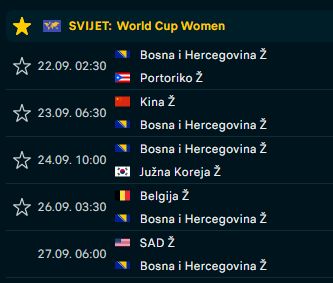 Dakle naša reprezentacija otvara ovo svjetsko prvenstvo u dalekoj Australiji i gradu Sidneju svojom utakmicom protiv reprezentacije Portorika u noći sa srijede na četvrtak u 02.30 sati. Svjetsko prvenstvo će prenositi SPORTKLUB. E sad kakve su nam šanse u grupi sa USA, Belgijom, Portorikom, Kinom i Južnom Korejom. Pa trebali bi ako uzmemo u obzir sve argumente dobre. Iz grupe prolaze po 4 reprezentacije. Ako izuzmemo USA koja je zaista neka druga galaksija nakon sinoćnjeg gledanja finala WNBA protiv svih ostalih reprezentacija u grupi mislim da možemo ravnopravno igrati i ići na pobjedu. Poslije USA u ovoj grupi Belgija je reprezentacija koja najbolje kotira na petom mjestu svjetske rang liste i dobili smo ih zadnja dva puta, nakon toga ide reprezentacija Kine na sedmom mjestu, pa Koreje na trinaestom i Portorika na sedamnaestom mjestu FIBA rang liste i ove sve cetiri reprezentacije su nama u biti nepoznanica. Mi smo po rankingu najgore plasirana reprezentacija u grupi i nalazimo se na 26 mjestu svjetske rang liste od 122 reprezentacije.