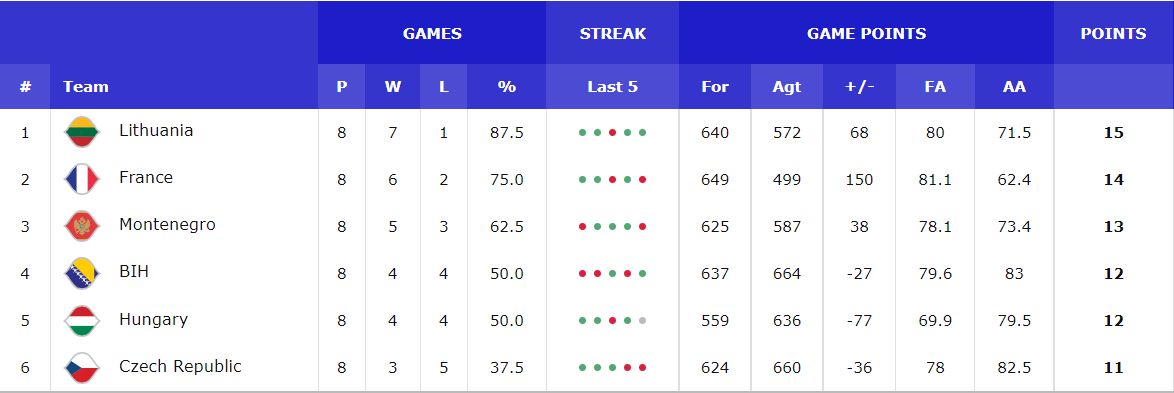 Francuska: Fournier 24, Gobert 10, Heurtel 11, Tarpey 8, Yabusele 14, Albicy 2, Cordinier 2, Jatieh, Luwawu-Cabarrot 4, M’Baye 5, Okobo 5, Poirier 4.