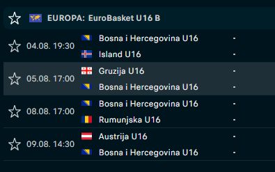E sad mi ćemo što je zaista obećavajuće biti kompletni i samo će faliti naš naturalizovani bek Roberskon a li po prvi put će tu biti još jedna BH NBA igrač Luka Garza. Trener Bećiragić još uvijek nije odredio konačan sastav. Raspored utakmica možete vidjeti ispod a web stranica takmičenja je OVDJE