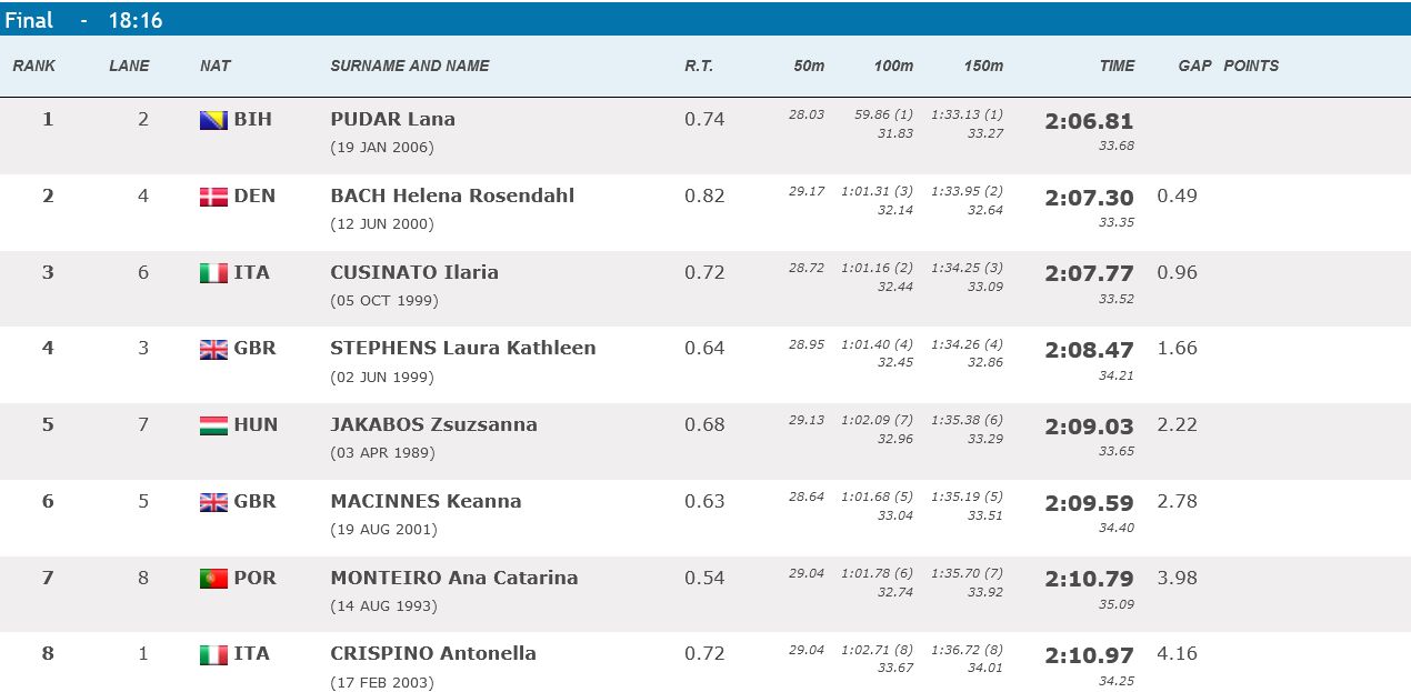 Dok ovo pišem suze sreće frcaju li frcaju. LANA PUDAR JE SENIORSKI PRVAK EVROPE U TRCI KOJA ĆE SIGURNO UĆI U ANALE EVROPSKOG PLIVANJA!! Pokazala je takvu dominaciju sa 16.5 godina da to ljudi moji ostavlja bez teksta!!!