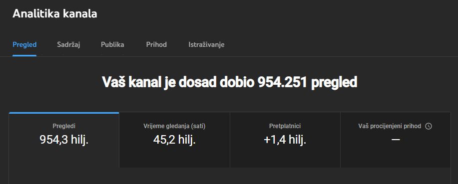 A da ne pomislite da nešto foliram postavit ću vam par sličica statističkih podataka ovoga kanala.