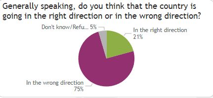 Da li se Bosna i Hercegovina kreće pravim putem NE je odgovorilo 75% ispitanika, 21% je reko DA a 5% nije imalo mišljenje o tome.