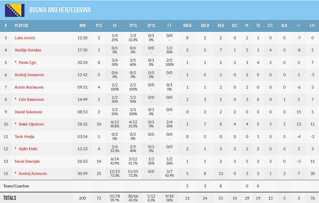 E sad debelo je odskakao Andrej Aćimović sa 25 koševa i 13 skokova što mu je donjelu zvrsnu valorizaciju od 30. Djedović je recimo pred kraj bio katastrofalan i prodao je 4-5 lopti što kroz izgubljene što kroz promašene zicere ali bez obzira pored Andreja on, Duvnjak i najmalđi Egić su nas i doveli do pobjede.